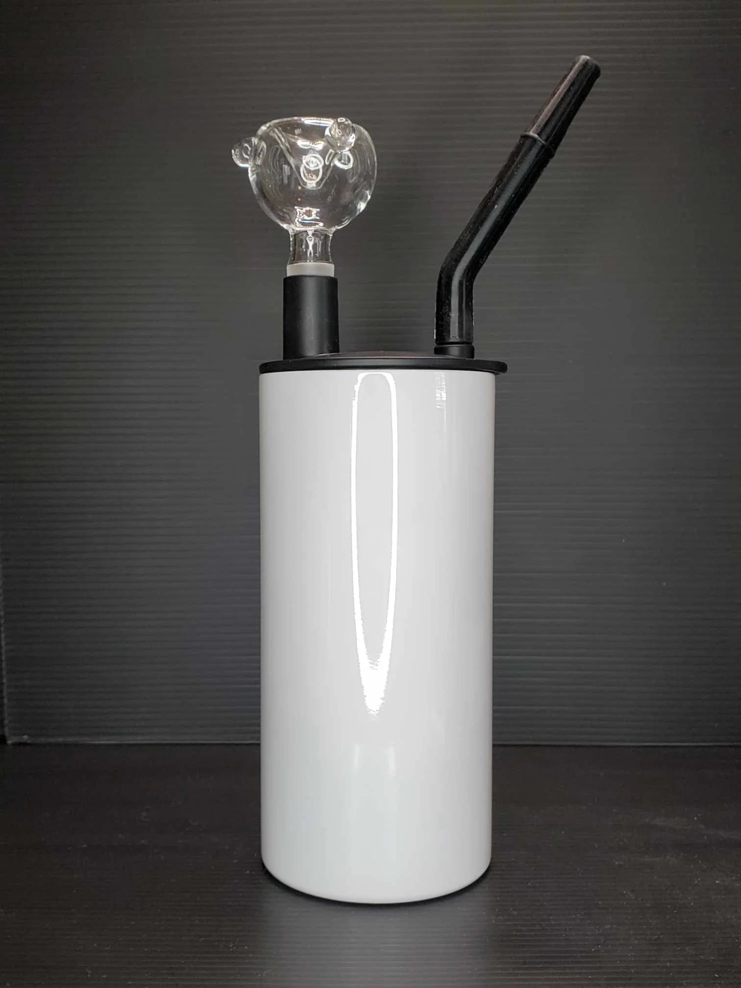 The cup is made from durable, double-walled stainless steel. It features a glass bowl and lid with straw, as well as a stainless steel straw for inside the hookah.